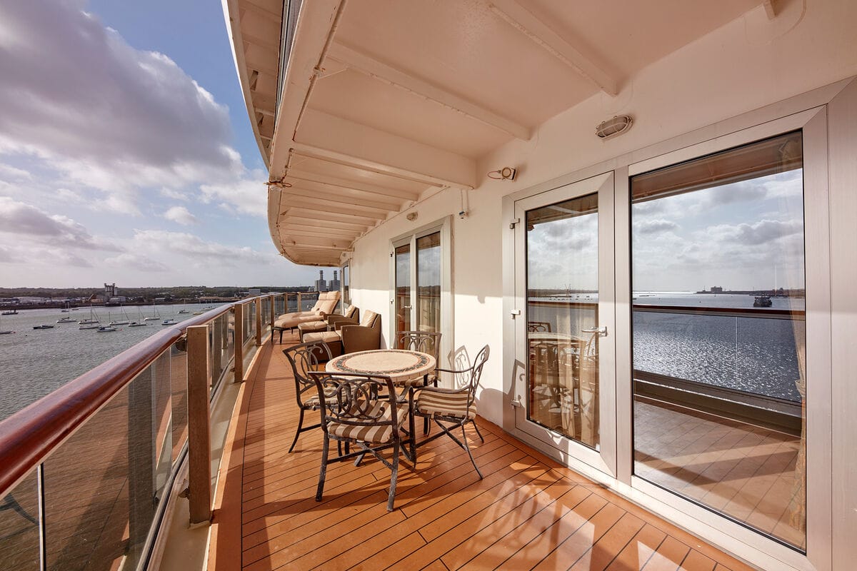 From Right to Left: The Rostron Suite - Queen Elizabeth, Royal Suite - Disney Treasure, Aft-Facing Balcony - Norwegian Bliss