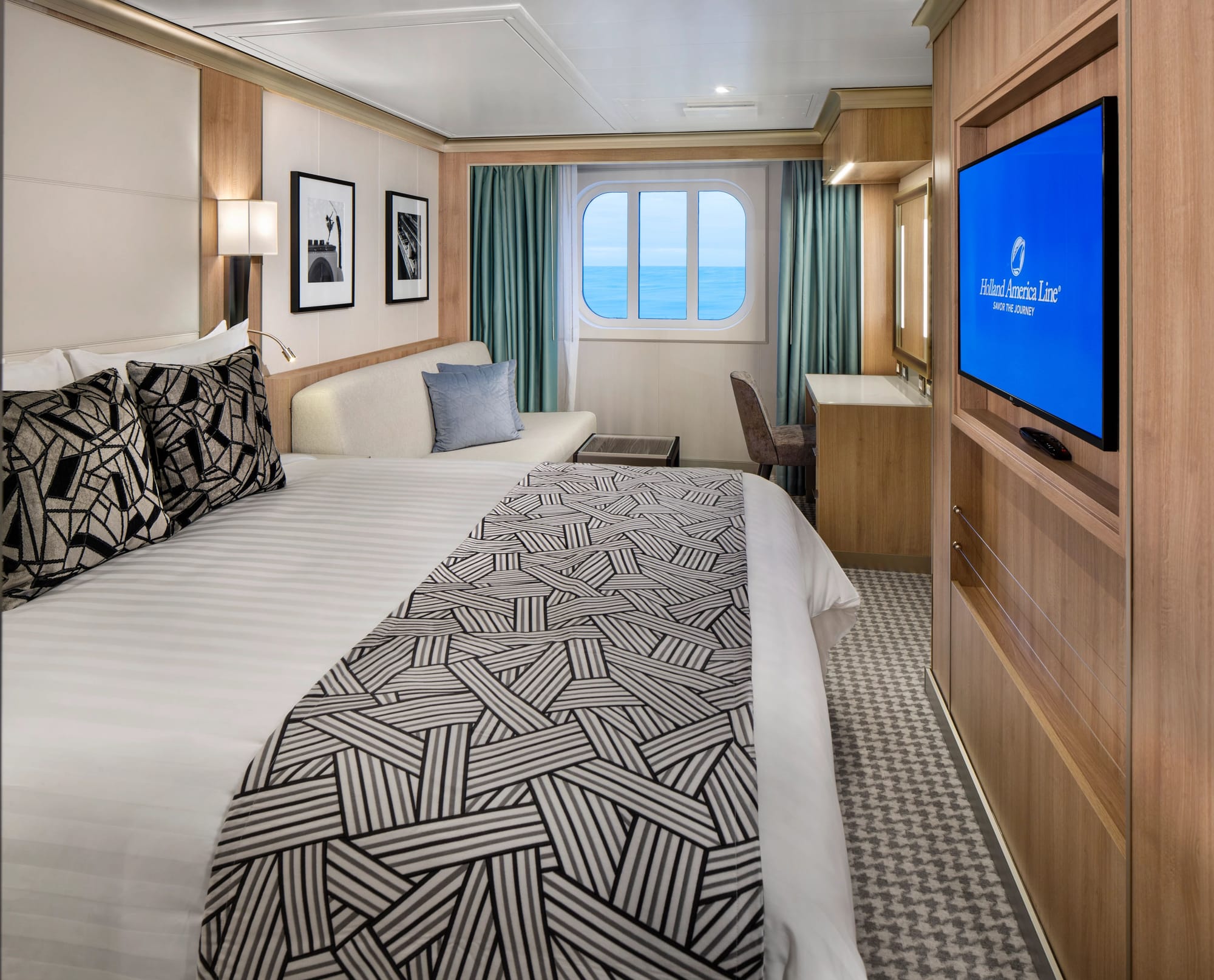 From Left to Right: Royal Suite - Celebrity Flora, Ocean View - Queen Anne, Oceanview Stateroom - Volendam