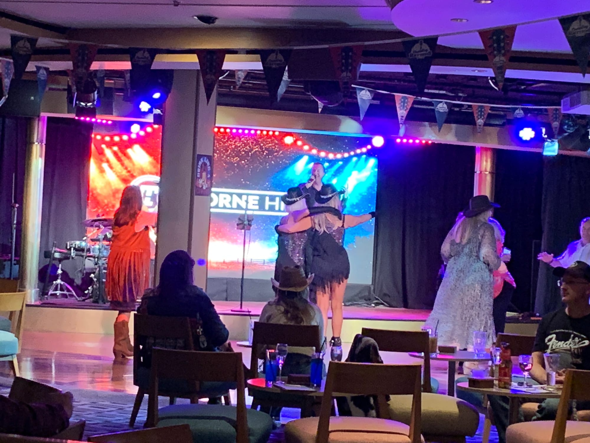 I was pepped up and ready for more shenanigans on board. By this time, everyone was in a full country vibe, always dressed in tassels or suede waistcoats, cowboy boots and the ubiquitous hats. We were one big happy country family, being very well looked after, and with dozens of activities day and night.
