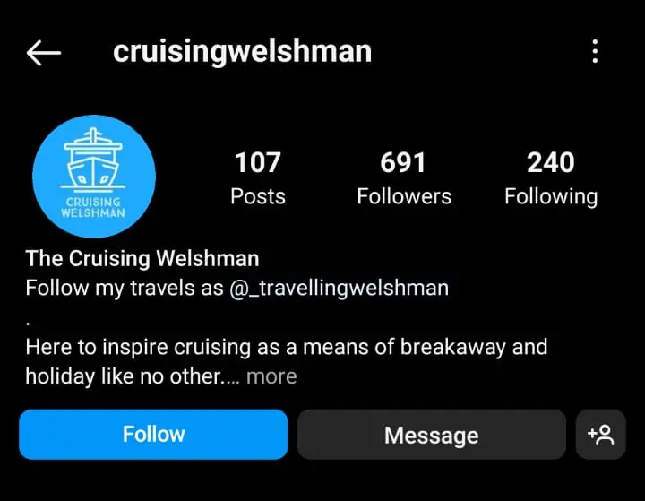 The Cruising Welshman is an up-and-coming cruise influencer, posting ship tours, cabin tours, restaurant tours and more throughout his Instagram account- including Instagram Reels and Stories. With thousands of views on his videos, he has posted videos about Celebrity Cruises, Norwegian Cruise Line and MSC Cruises amongst several others throughout the last few years.