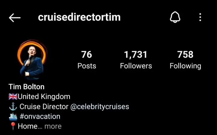 Although he primarily focuses on photo Instagram posts, he is starting to also post videos of his adventures onboard. Another account that gives an insight into the life of a cruise ship crew member, Tim is relatable and adds his own sense of humour throughout his content.