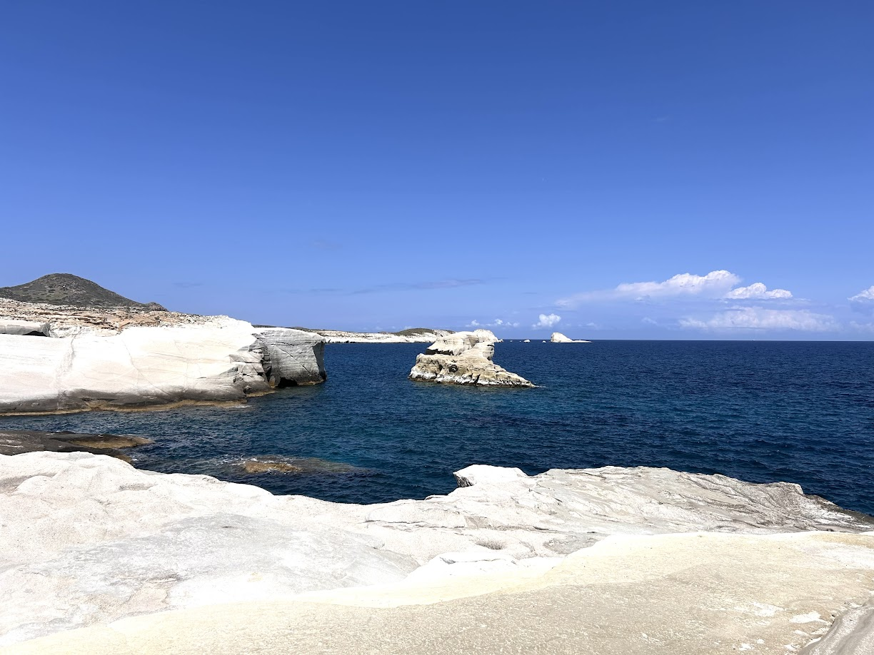 We first drove to Sarakiniko, their most photographed and well-known beach. It's not what I would describe as a beach, but rather a stunning white cliff. Many people explore the caves and sunbathe on the rocks.