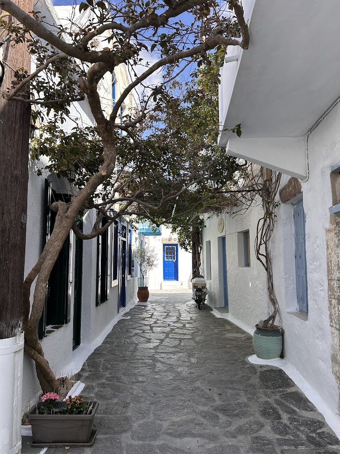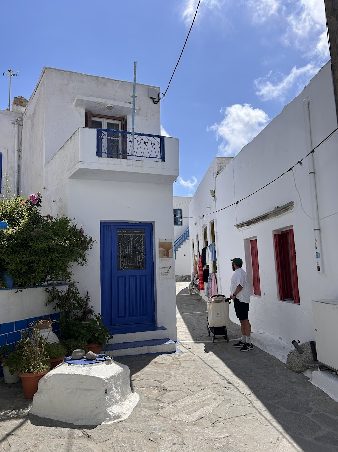 Plaka is the capital and yet still a small, picturesque village. It gives hints of Santorini with white washed walls and blue window shutters. It’s full of traditional restaurants and taverns, bars, and shops. And the flowers - climbing up the walls and over walkways. Whilst walking around, we spotted a little hatch serving Aperol Spritz. Plaka is not pushchair-friendly; we couldn’t explore as much as we wished, as we needed to stay around the main walkways. There are a lot of steps, so do be aware if you are less mobile or with a pushchair.