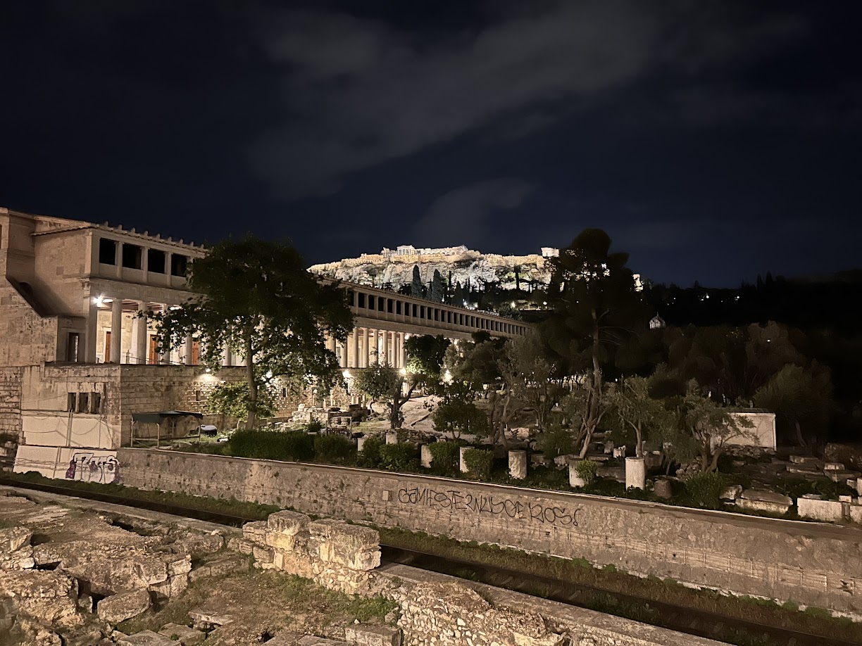 Plaka is the Old Town, and just what you'd expect. It has quaint shops, bars, and an abundance of restaurants – plenty to choose from. Monastiraki has a strip of restaurants with a view across the ruins, which looked breathtaking at night whilst we ate our final gyros of the trip.