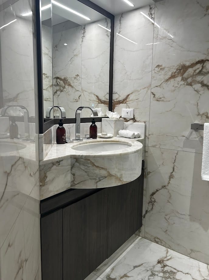 The Suites were incredibly designed. The suite itself is spacious, featuring a large balcony, a walk-in shower, and a walk-in wardrobe. The suite features a range of amenities, including a coffee machine, TV, Dyson hairdryer, and automatic lights. The little details and decor create a beautiful space.