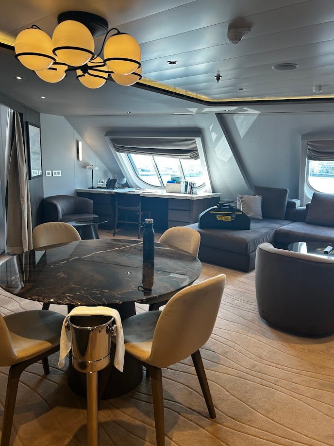 Embarkation was the most seamless embarkation we have ever experienced. With a capacity of only 922 guests, Explora 1 offers a passenger-to-crew ratio of 1.25:1, so you’ll find little to no queues, and we found this throughout our entire stay. Our luggage was tagged and taken, then we were personally guided onboard and to the Journeys Lounge to complete check-in, retrieve our SeaPass cards, and told our Suite was ready for us. No waiting until later in the afternoon.