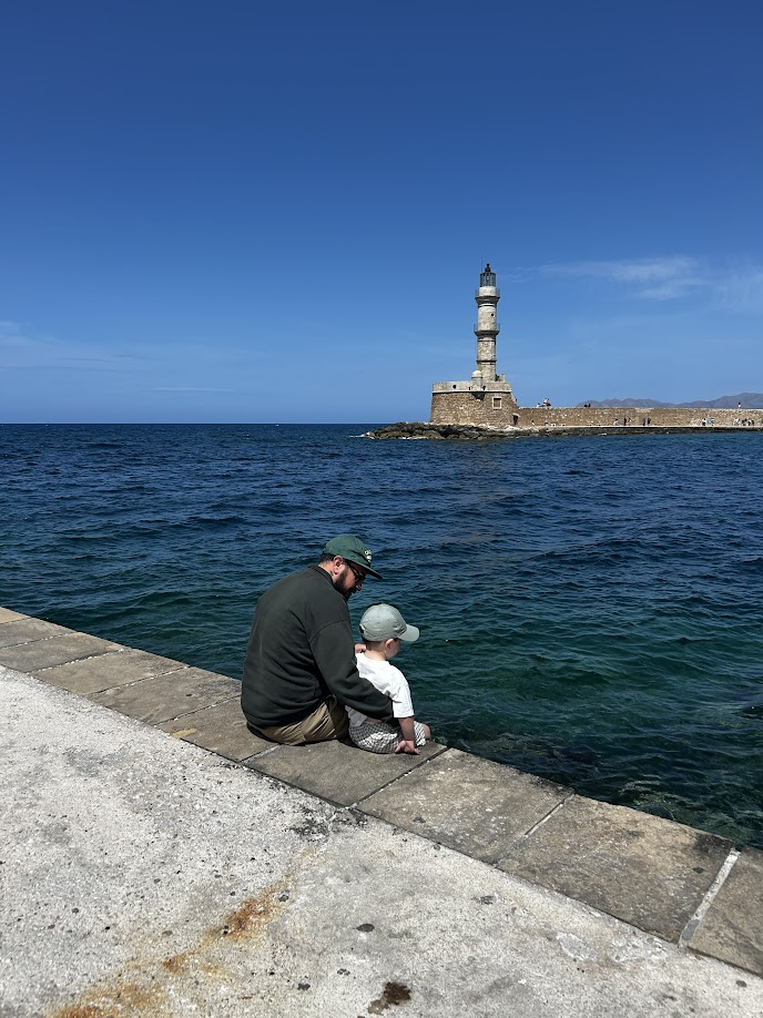 You can walk leisurely to the Venetian Lighthouse from the main Marina area. We walked around the Marina, which is full of restaurants, bars, and shops, along with live music from various buskers. It was busier than we expected, but not so busy that we struggled to find a table with a view - ideal for people watching and our first gyros of the trip!