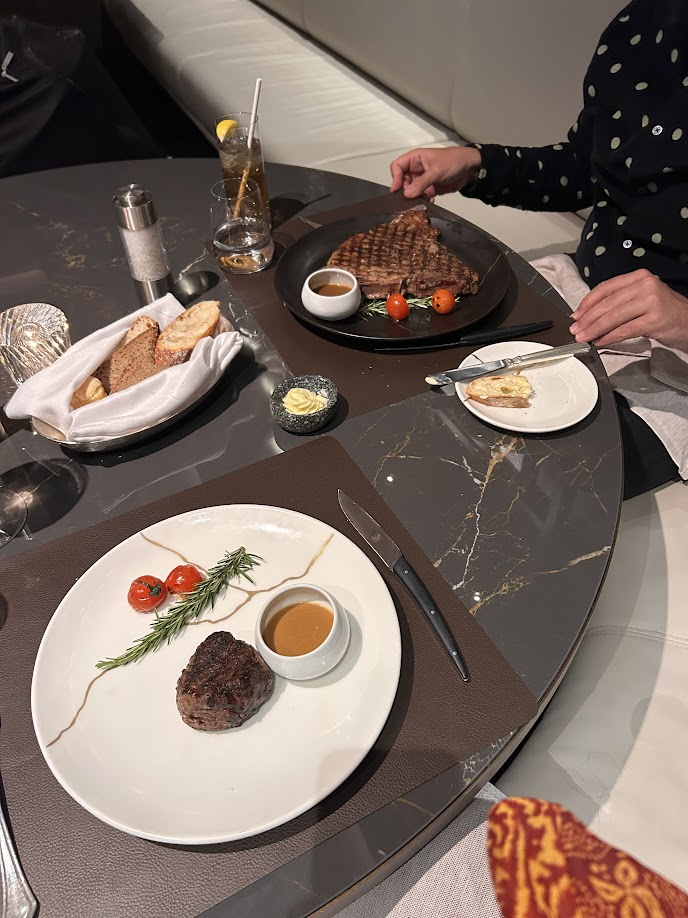 We didn’t expect much on the menu for a toddler, so we let him enjoy his long nap, and we had the best meal we had onboard! We are steak fans in general, so we knew we were going to simply love this restaurant. It was decorated with dark marble and moody lighting.