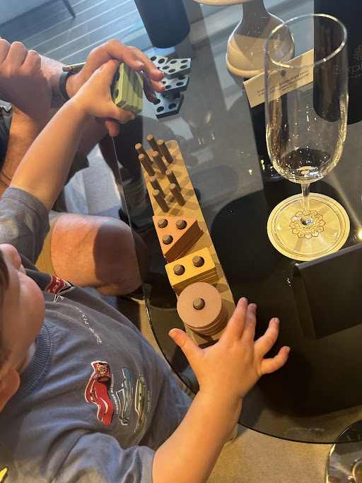 To our surprise, there was an age-appropriate Montessori toy in the suite, which went down a treat, as did our welcome champagne!