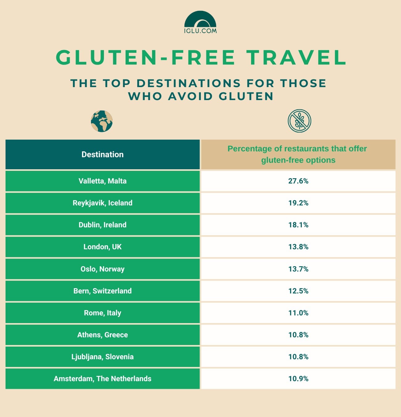 With that being said, we have revealed the top destinations to visit if you’re gluten-free. The team at Iglu Cruise analysed every capital city in Europe and used data from TripAdvisor to discover the percentage of restaurants that offer gluten-free options.