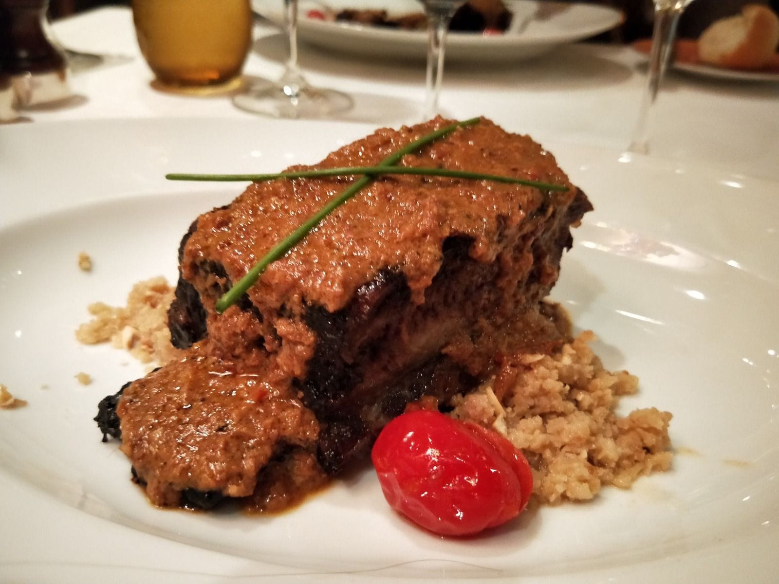 - Slow-cooked Wagyu beef cheek with baked maitake mushrooms