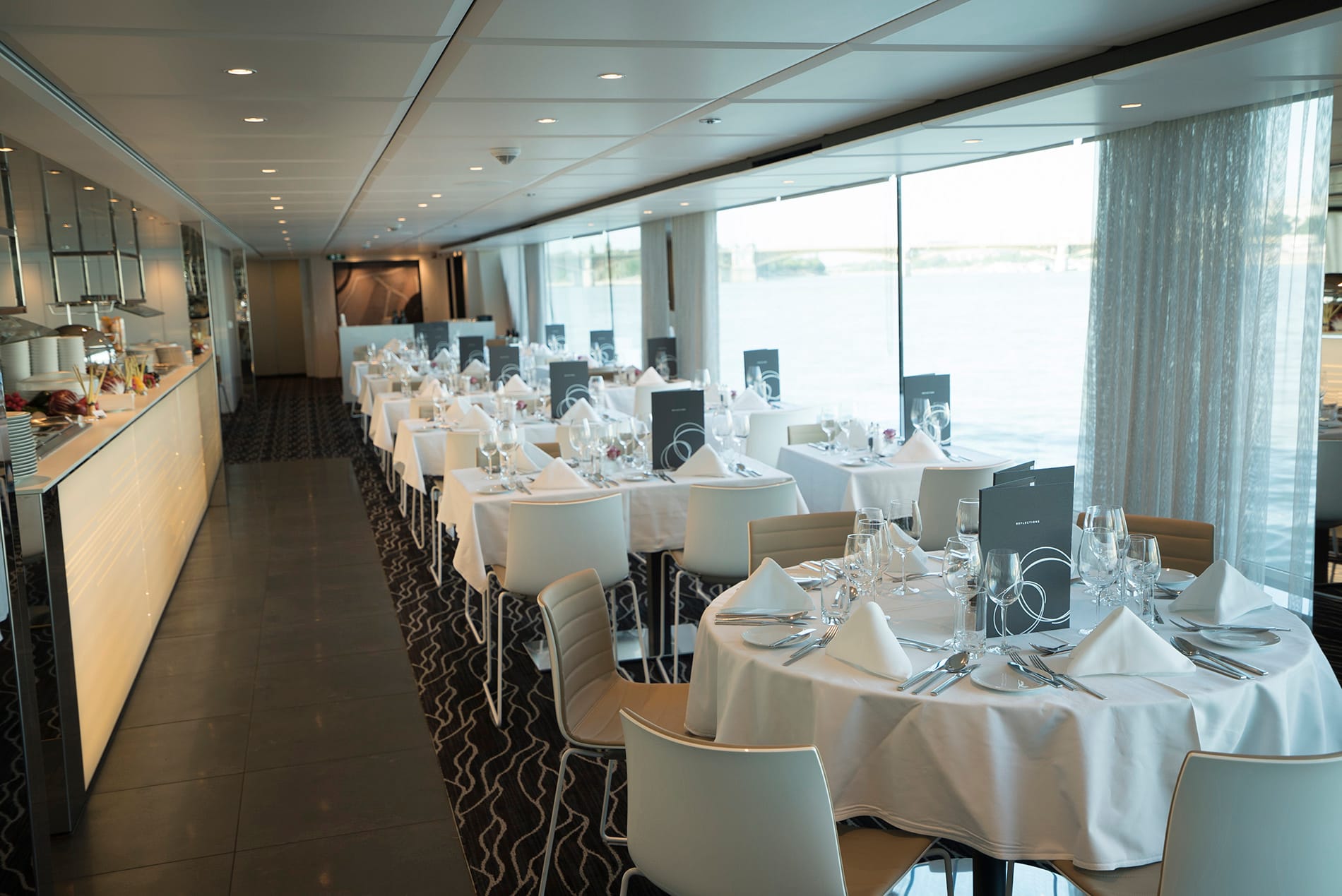 The dining options you’ll encounter on Scenic River Cruises’ ships, which vary from ship to ship, include: Crystal Dining, the main restaurant featured across the entire fleet; River Cafe, a casual experience perfect for a light lunch; Portobellos, an intimate dining experience for 32 guests an evening; Table La Rive, which is invite-only; and Chef’s Table, where you’ll be invited to indulge in a ten-course tasting menu. You’ll also find in-suite dining available on Scenic River Cruises’ ships, should you wish to enjoy eating in the comfort of your cabin.