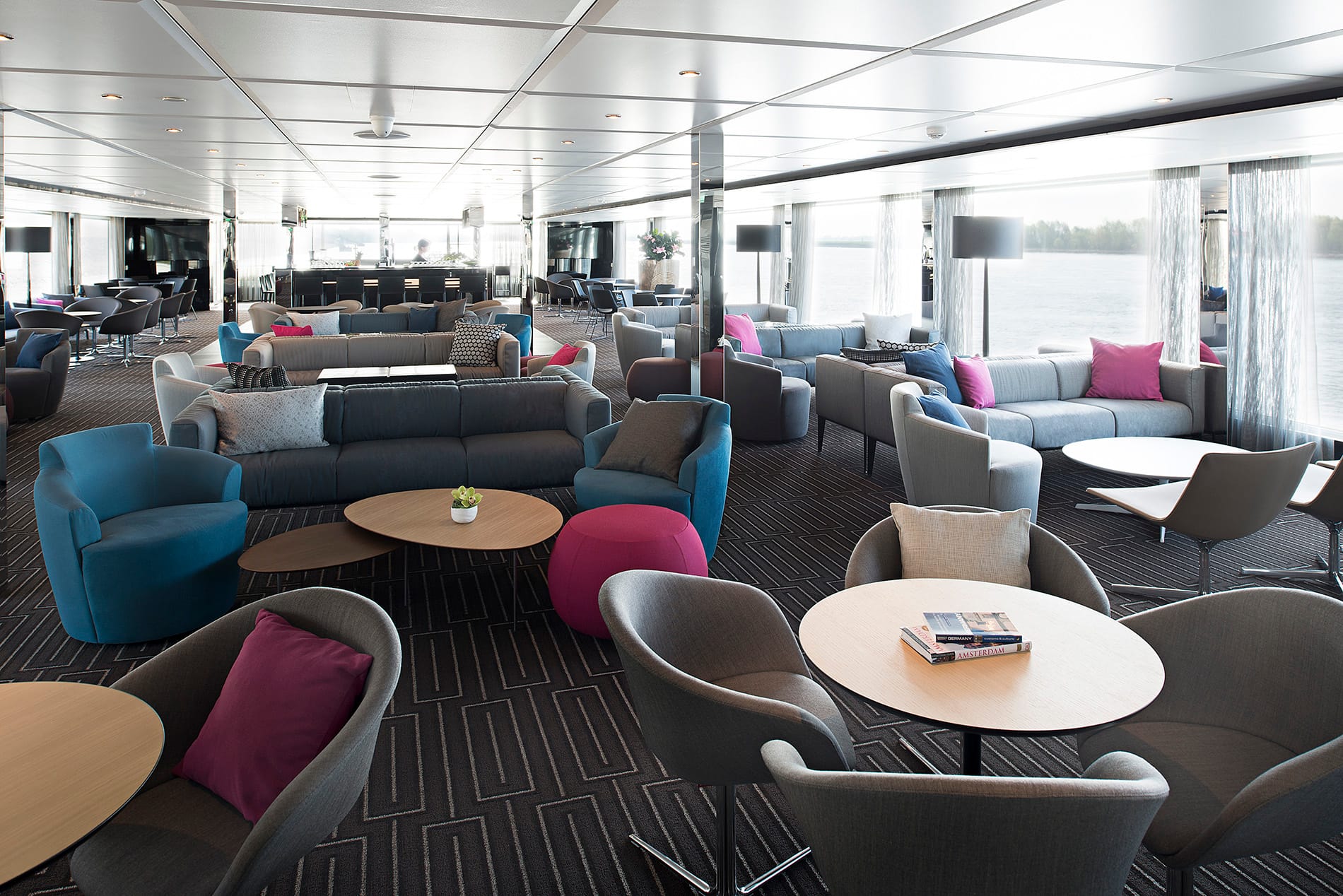 Typically, on Riviera Travel’s river cruise ships, you’ll find an elegantly-appointed main restaurant, a stylish main lounge space with a full-service bar, a wellness centre featuring a small fitness room and spa treatment rooms, and a sun deck boasting ample sun loungers and seating.