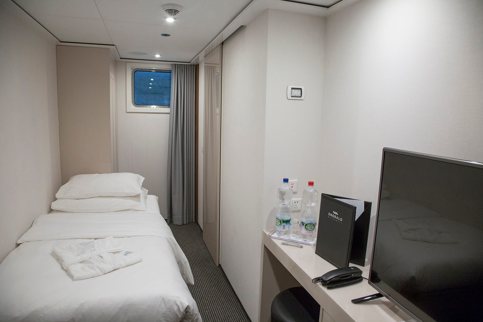 On select Europe-based ships, you’ll be able to book an Emerald Single Stateroom, a variation on the Emerald Stateroom explicitly designed to cater to solo travellers. Meanwhile, the Emerald Staterooms on Emerald Harmony feature a porthole rather than a picture window, though they offer substantially more room to relax. The suites on this Southeast Asia-based river cruise ship are also significantly larger.