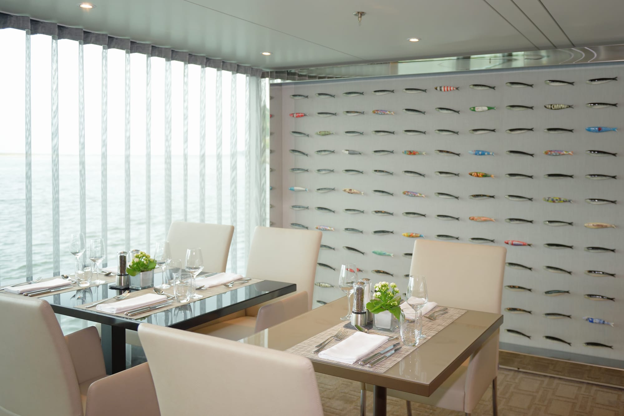 You’ll also have the chance to enjoy a flat-screen TV with satellite channels, access to a hairdryer and an inter-ship telephone, as well as a secure safe to ensure your valuables are always protected. The bathrooms are also stylishly modern, with plush towels and bathrobes available, as well as complimentary premium toiletries.