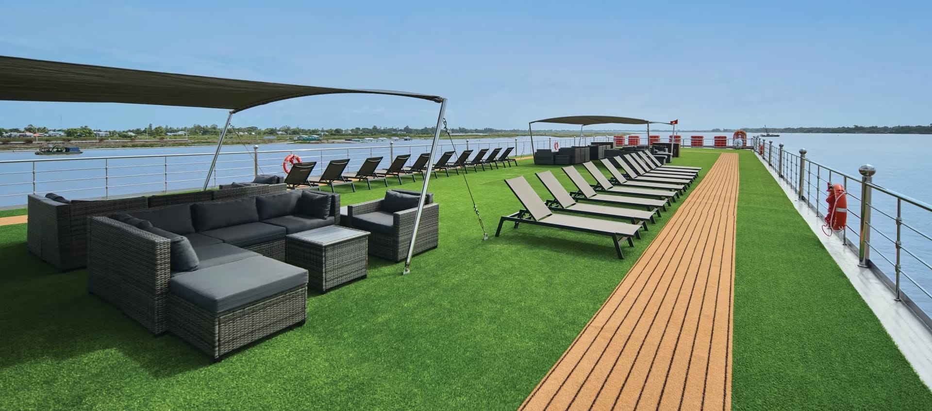 Smaller than Emerald River Cruises’ Europe-based ships, the Sun Deck does away with the Putting Green, focusing instead on ensuring there’s enough seating for everyone to enjoy.