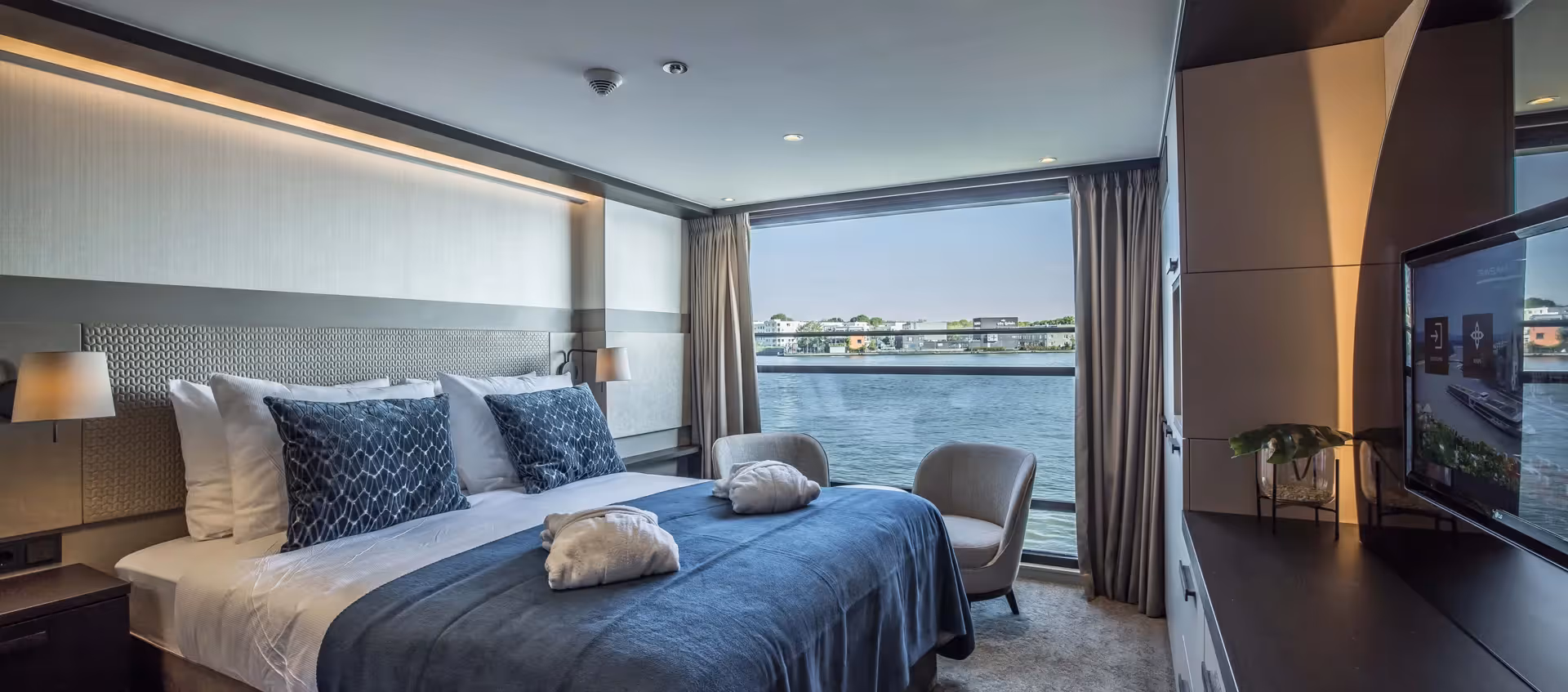 Luxurious, with a view you won’t want to miss, the accommodation you’ll encounter on Riviera Travel’s river cruise ships is akin to a floating boutique hotel. No matter where in the world you’re sailing, a relaxing night’s sleep awaits.